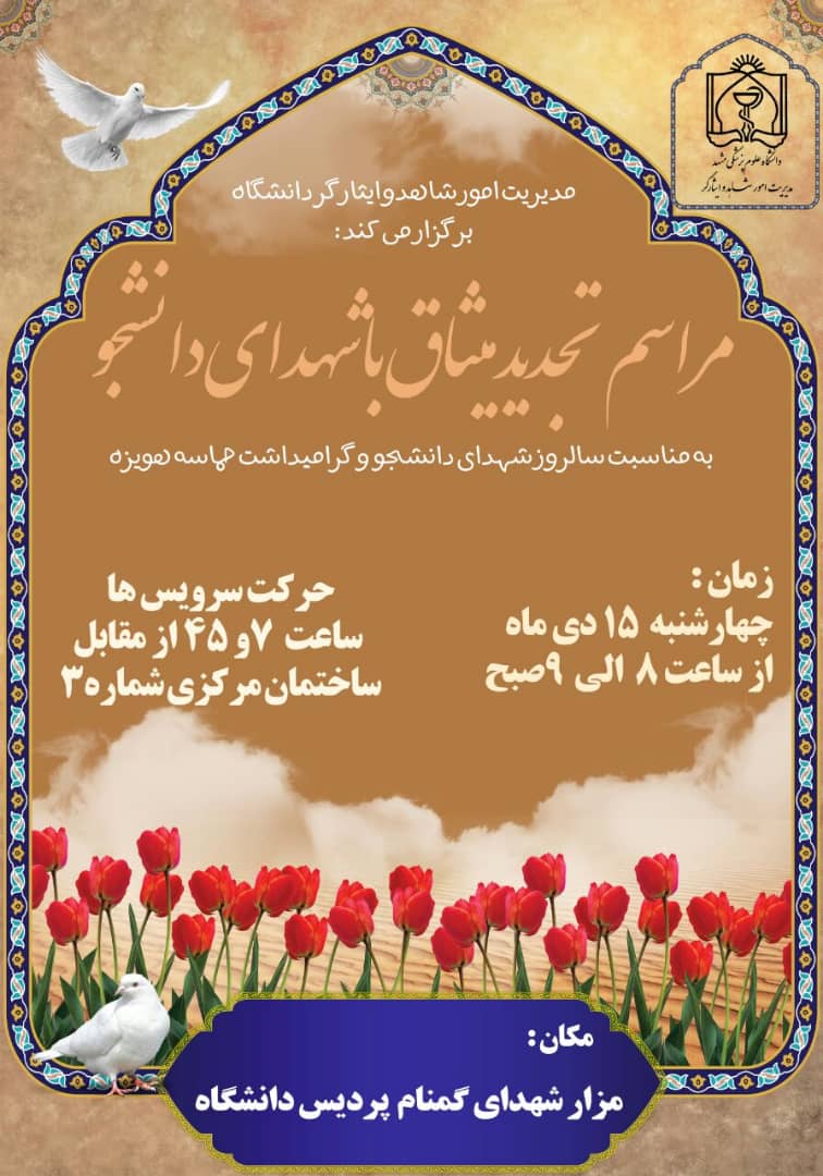 مدیریت امور شاهد و ایثارگر دانشگاه به مناسبت فرا رسیدن ۱۶ دی ماه، سالروز گرامیداشت شهدای دانشجو برگزار میکند: